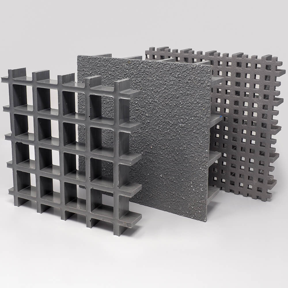 Las rejillas y estructuras de PRFV son ligeras y fáciles de manejar, presentan una gran resistencia mecánica, son resistentes a los agentes químicos y atmosféricos y se distinguen por sus propiedades dieléctricas.